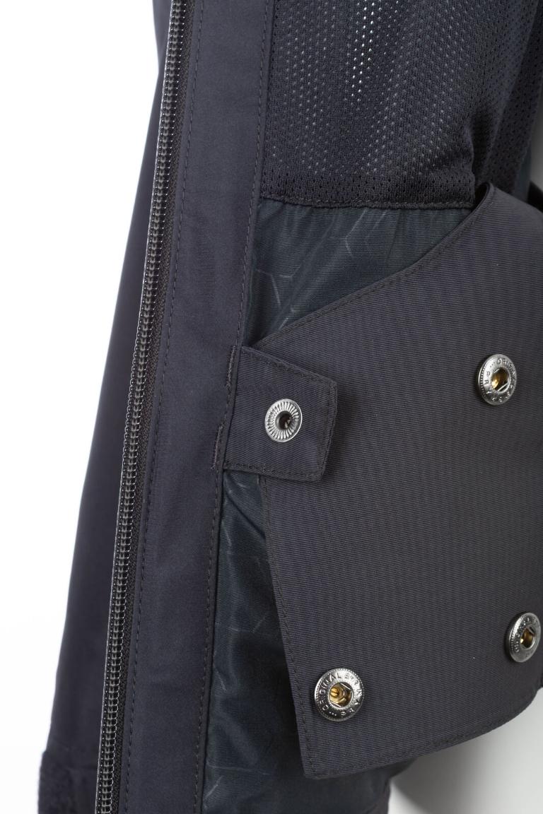 Denne jakken er konstruert for kvinnelige ryttere med fokus på bevegelsesfrihet, komfort og funksjonalitet. Den fukttransporterende hengende innsiden holder deg tørr fra innsiden, mens justerbar krage, mansjetter med tommelhull og justerbar nederkant gir ekstra komfort og tilpasning.