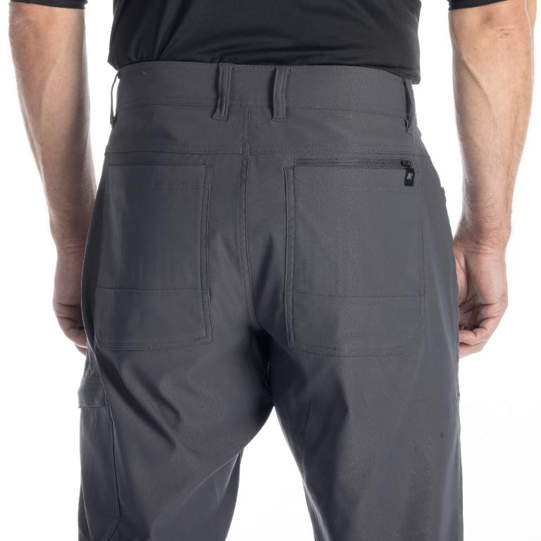 Praktiske lommer: Venstre lårlomme med glidelås, baklommer med innvendig glidelåslomme og meshforede lommer gir god plass til nødvendigheter.